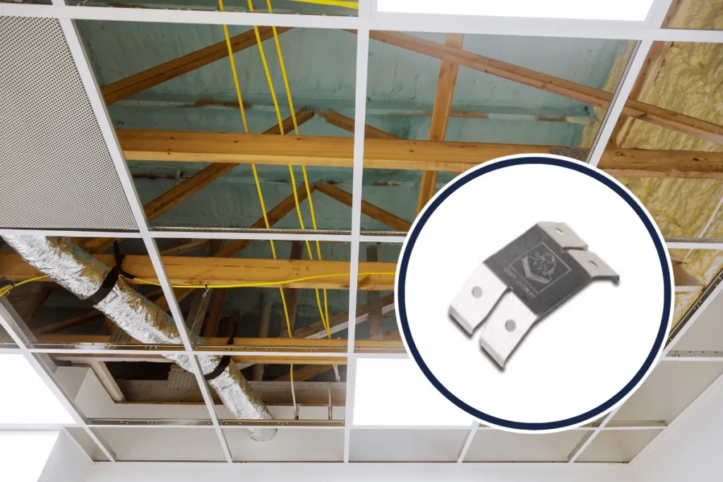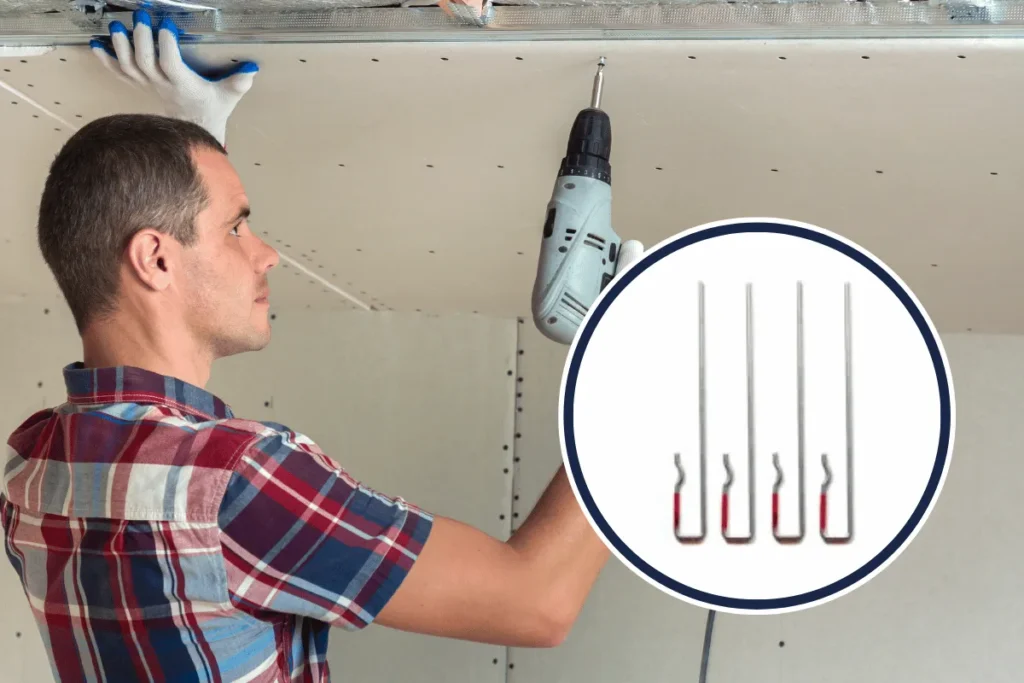 ใช้สว่านเจาะเพดาน เพื่อแขวนลวดสปริงสำหรับห้อยโครง ในขั้นตอนห้อยลวดสปริงเป็นแนวสี่เหลี่ยม พยายามติดลวดสปริงไขว้ทับกันเป็นรูปตัว T ด้วย จากนั้นก็ติดลวดสปริงให้ทั่วบริเวณห้อง