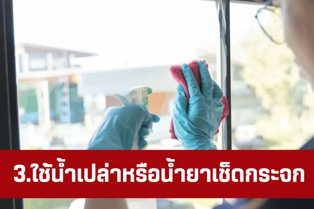 ใช้น้ำเปล่าหรือน้ำยาเช็ดกระจก